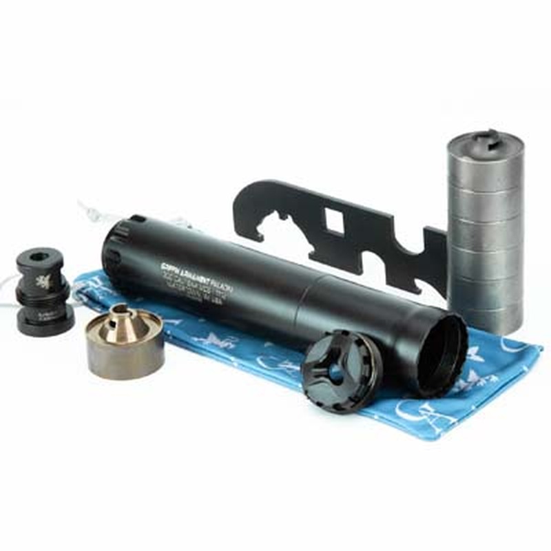 The PALADIN 300 takes key attributes of the Recce 7 and merges them with a new to market Patented HEDP baffle system. Design features such as the ratchet-lok front cap make the PALADIN easy to service, disassemble and clean. The active locking front cap also allows for the use of lead bullets and rimfire without fear of damaging the suppressor.